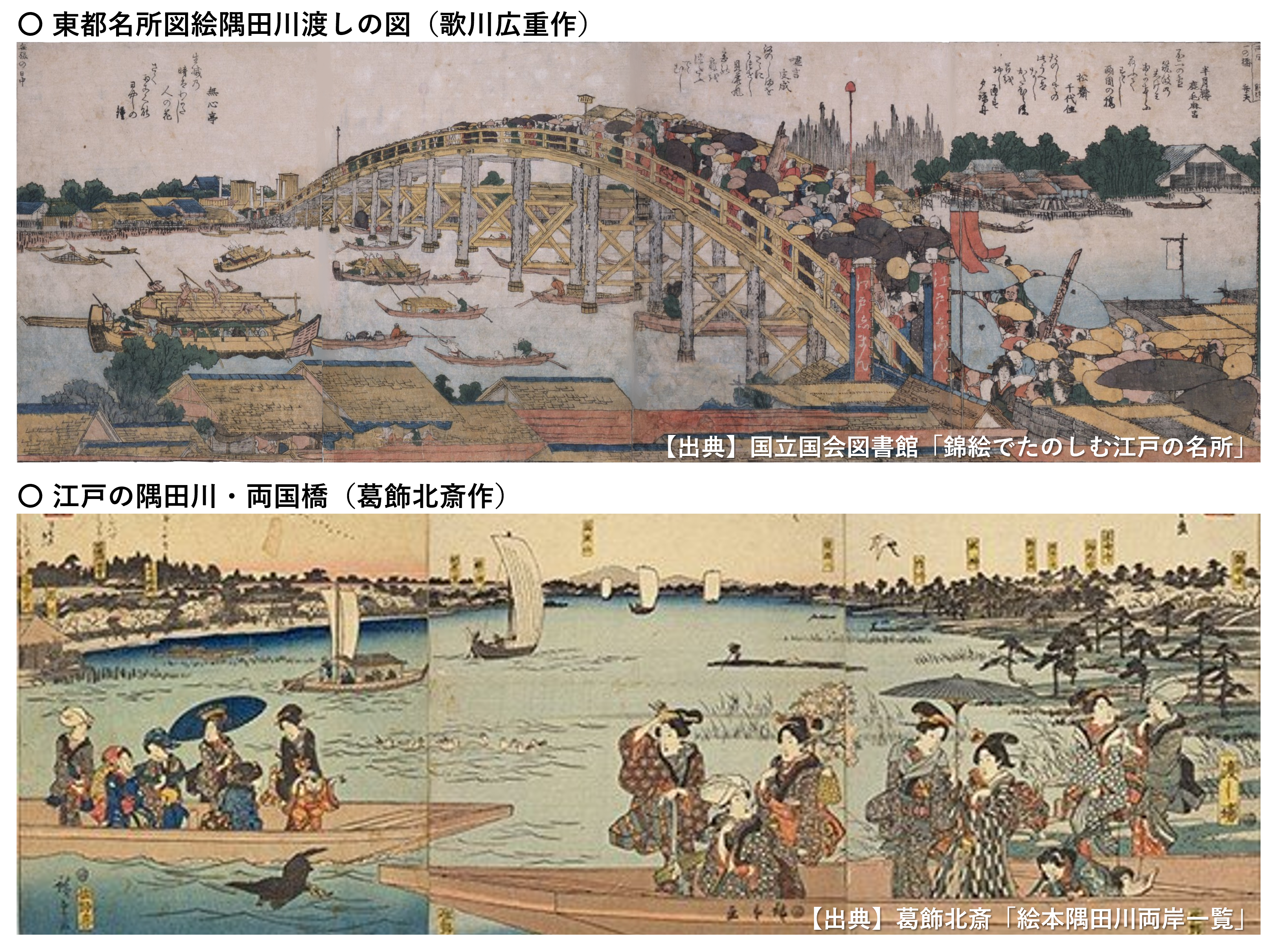 江戸幕府が開かれた以降、河川を利用した舟運が経済を支え、関東一円から利根川水系を経由して東京湾へ繋がる隅田川は、その川岸の周辺に多くの倉庫が建ち並び、運送業や旅客業が発展しました。