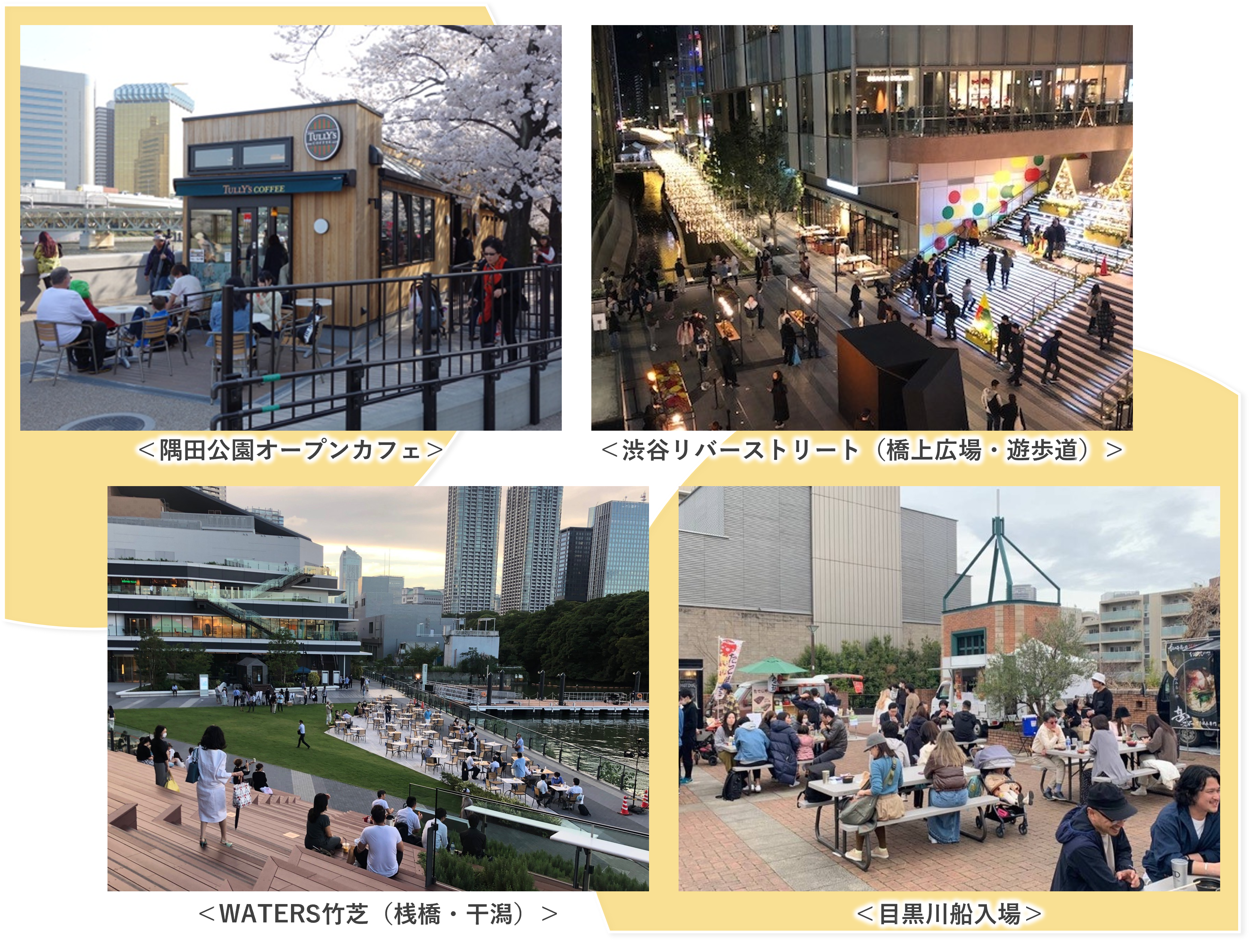 都内においても、オープンカフェや広場・キッチンカー等による河川空間の利活用がされており、にぎわいが生まれています。