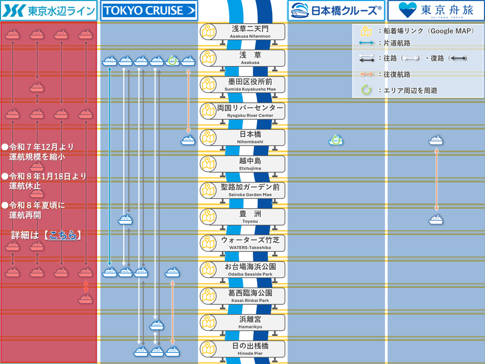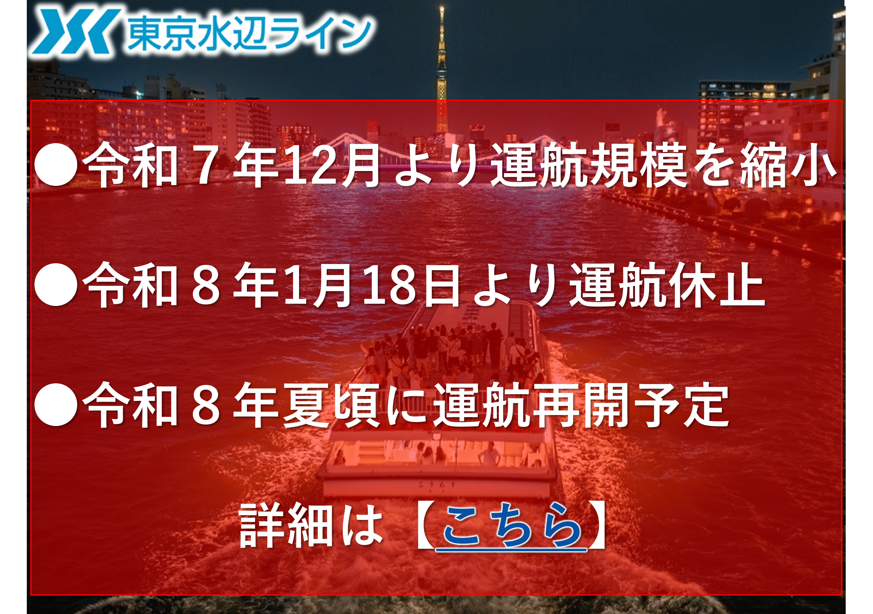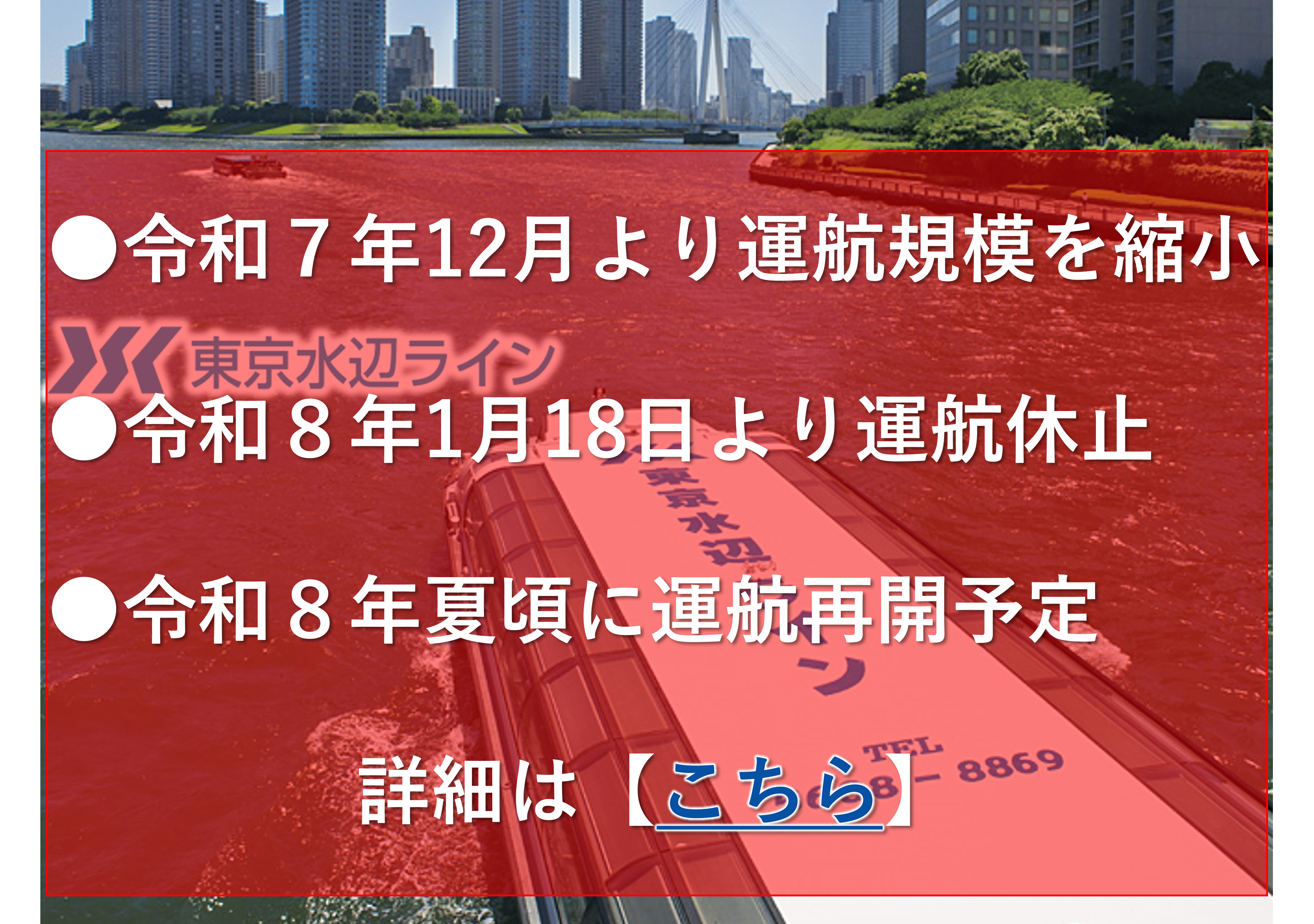 また、GO TOKYO(公益財団法人東京都観光財団)にて、各舟運事業者のクルージング体験などのコンテンツが紹介されていますので、ぜひご活用ください。