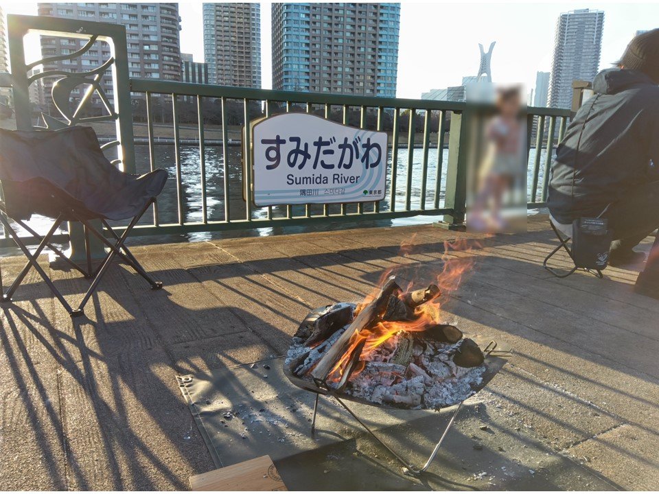 ●昨年に引き続き、越中島の隅田川テラスで焚き火イベントを開催!