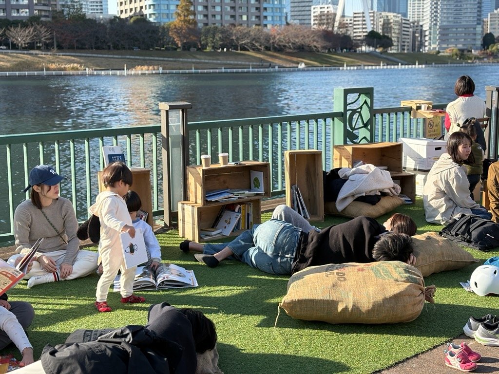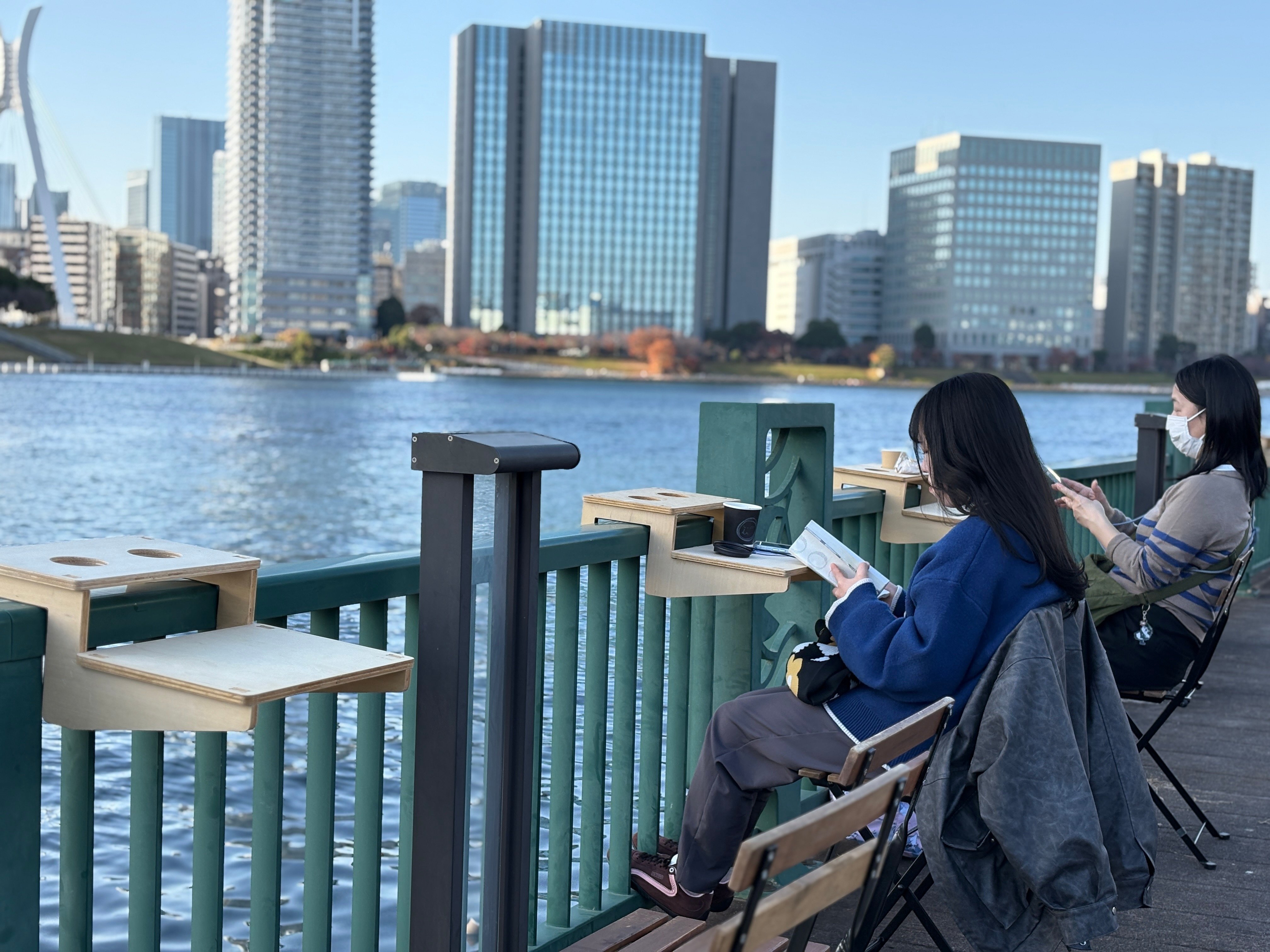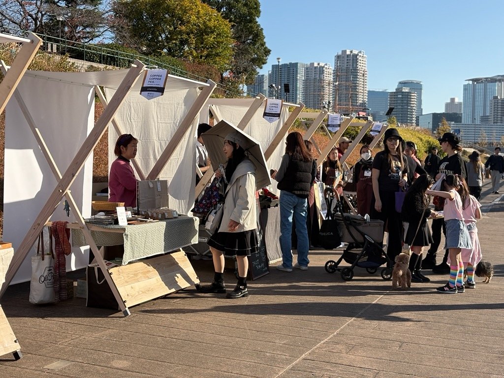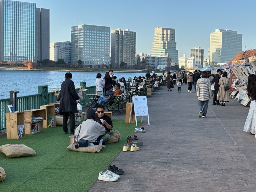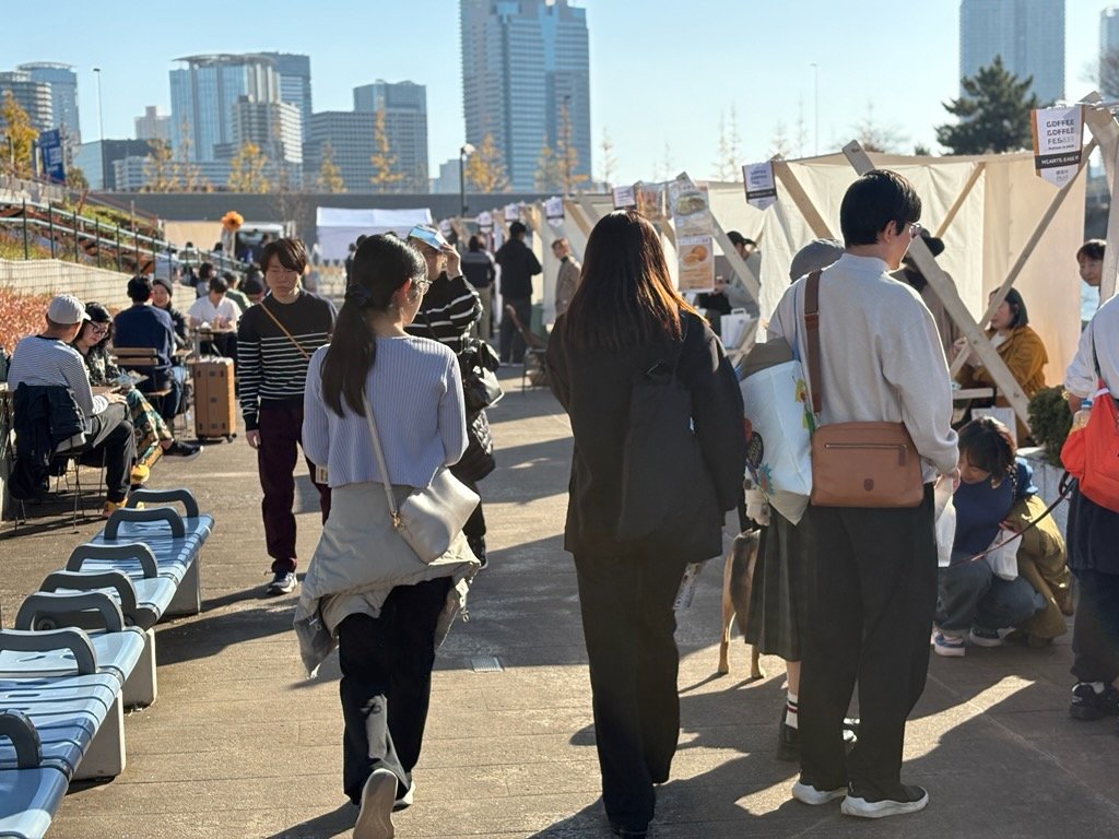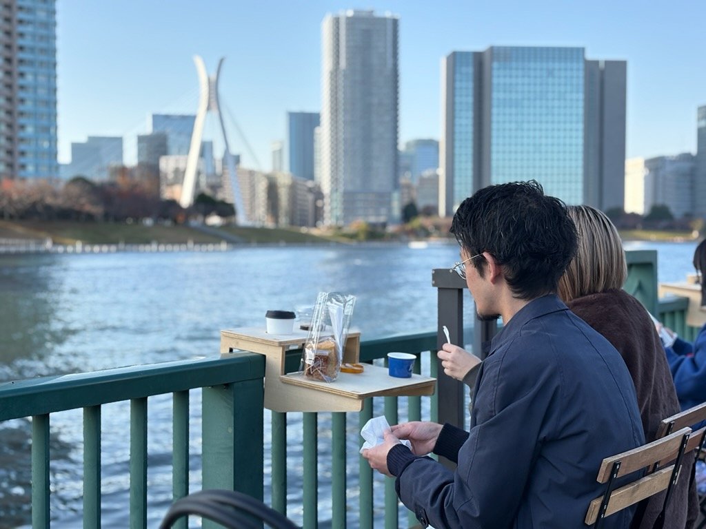 水辺のゆとりや潤いを感じながら、隅田川テラスに立ち並ぶマルシェで購入したコーヒーやスイーツなどを楽しむ方々で越中島が賑わっていました!